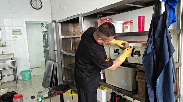 本次大掃除嚴格遵循“無死角、全覆蓋、保安全”的原則,工作人員分工明確、密切協(xié)作。在操作間,對灶具、抽油煙機、蒸箱等設(shè)備進行了深度去污與洗刷,確保無油漬殘留;在就餐區(qū),全面擦拭桌椅、門窗,徹底清掃地面,保持環(huán)境整潔明亮;在食材儲存區(qū),系統(tǒng)整理貨架、冰柜與消毒柜,并落實消毒措施。同時,針對下水道、垃圾桶周邊等衛(wèi)生死角進行重點清理,有效杜絕細菌滋生與污染隱患。