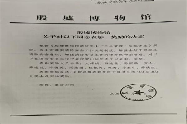 2026年2月12日,殷墟博物館召開(kāi)2026年春節(jié)安全工作部署會(huì),全面安排部署春節(jié)期間景區(qū)安全保障工作。特保大隊(duì)大隊(duì)長(zhǎng)牛曉波受邀參會(huì)。